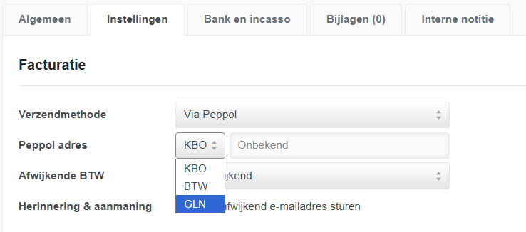 - Kies vervolgens in het witte menu rechts er naast voor "Peppol".