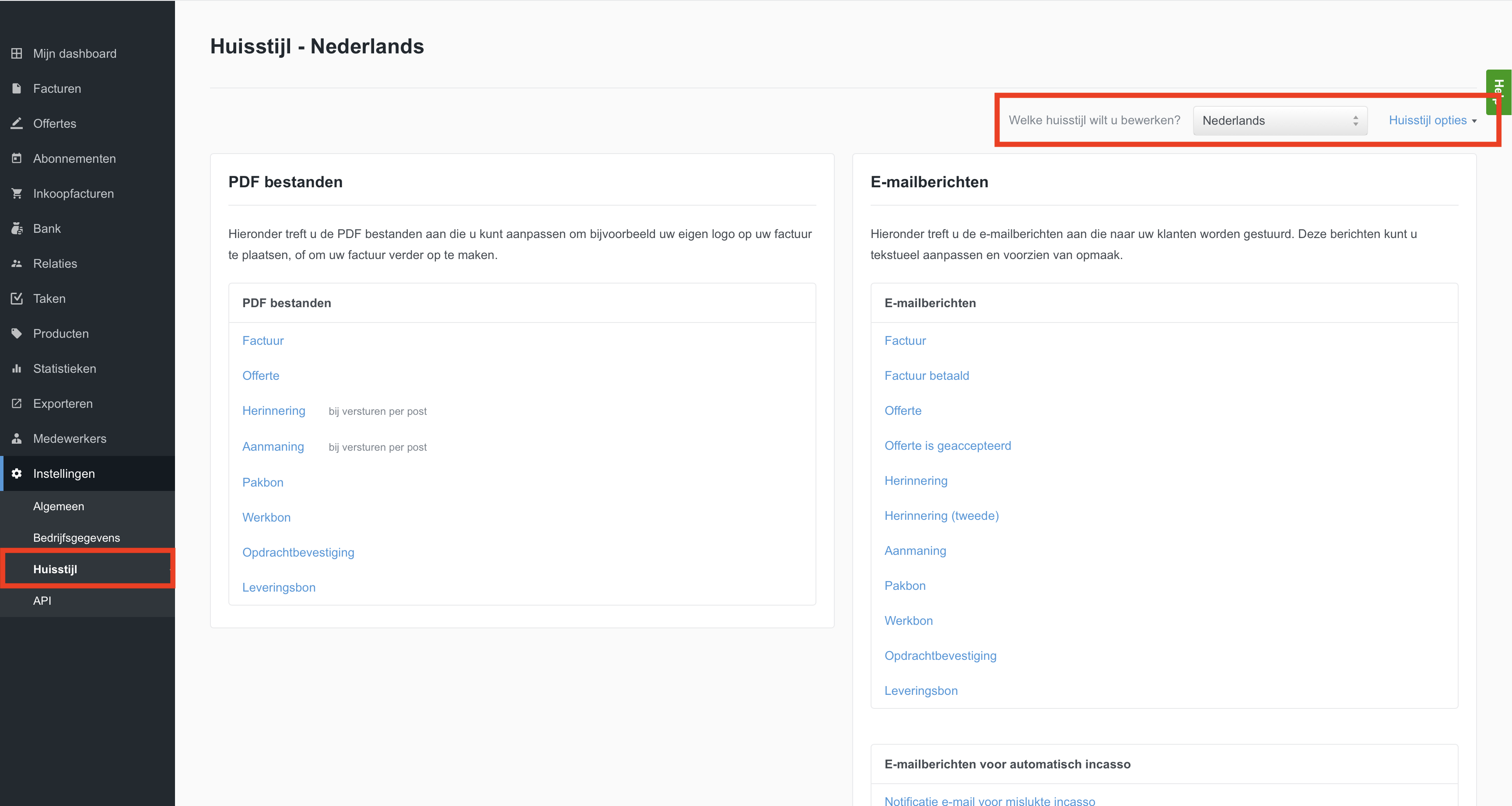 Instellen bij de huisstijl