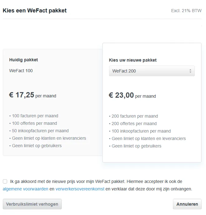 Het verbruikslimiet van uw WeFact abonnement ophogen